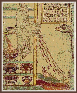 • Above, Stone Image: The Gotlandic image stone Stora Hammars III is believed to depict Odin in the form of an eagle (note the eagle’s beard), Gunnlöð holding the mead of poetry, and Suttungr. Public Domain.